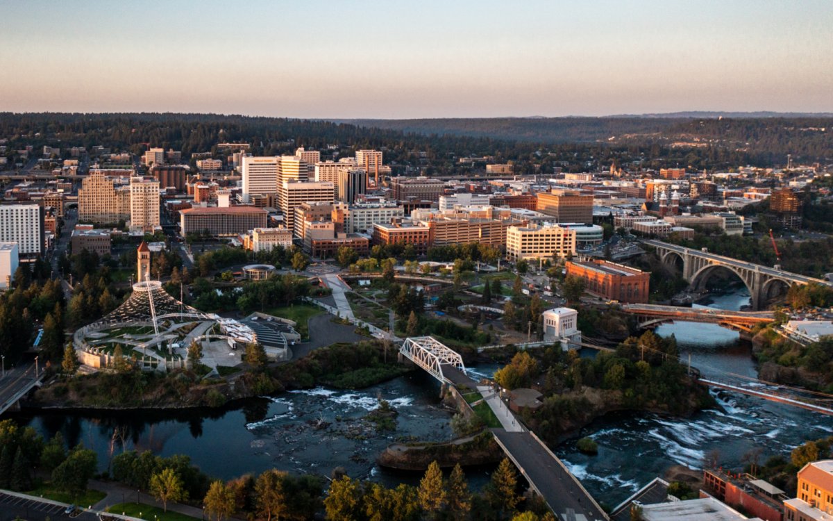An aeriel view of Riverfront Park in Spokane, a pass-through on our 5-day E-Bike Tour