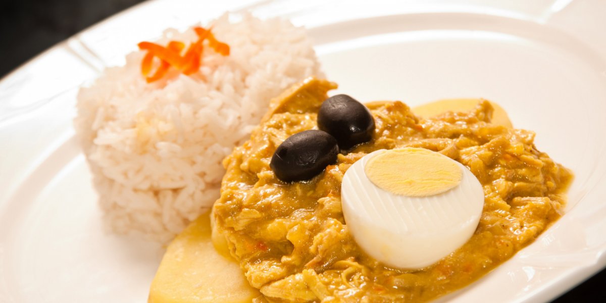 One of the most popular chicken dishes in Peru is aji de gallina which features a thick sauce made from an irresistible combination of ground walnuts, cheese, evaporated milk and yellow chilies. It is usually served with white rice, boiled potatoes and a garnish of black olives to create a rich and hearty meal.