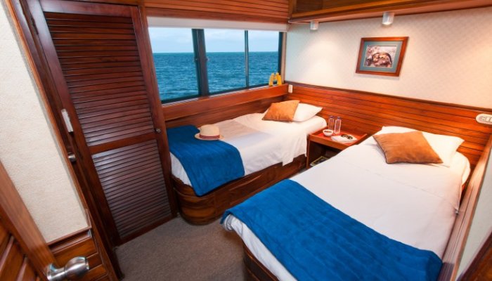 Relax in the cozy lounge area that’s complete with a flatscreen TV and library while soaking up the Galapagos views through the panoramic picture windows. The Letty also features a spacious sun deck where you can kick back in a lounger, as well as a stylish dining room and a well-stocked bar.