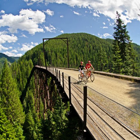 The trip starts on the Washington Centennial Trail, a 37-mile path named after Washington State's centennial anniversary. It continues on to the Idaho Centennial Trail leading to the lakeside resort town of Coeur d'Alene. On the second day a three-hour kayak paddle on Lake Coeur d'Alene visits nesting sites of osprey and a forested shoreline.
