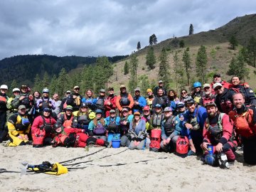 China rapid is rated class IV because it requires focus and careful decision making. There are a few ways to navigate through this rapid incorrectly, but that’s what your guide is here for. When a rapid calls for extra attention, we do what’s called scouting: we hop out, walk along the shore, and study the water before running the rapid. Picking our way past balsamroot flowers and scattering crickets, everyone seeking a view heads up the hill to watch the grand Salmon River flow around a tight bend, striking giant boulders along the way and coursing over shallow gravel bars. At the bottom water crashes against the left shore before it all calms to a pool. The kids–who’ve been buzzing about Class IV rapids since day one–are fired up with anticipation.They wait impatiently as we analyze the rapid, choosing our lines and discussing technique among guides and interested guests. When we finally load up to go, they are practically vibrating with excitement.
