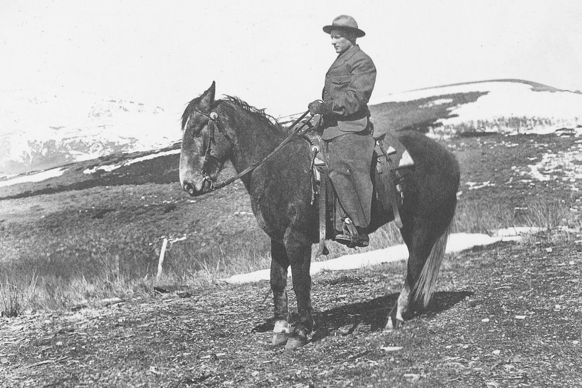 Herman Work, 1912, in Idaho with his USFS issue uniform and horse.