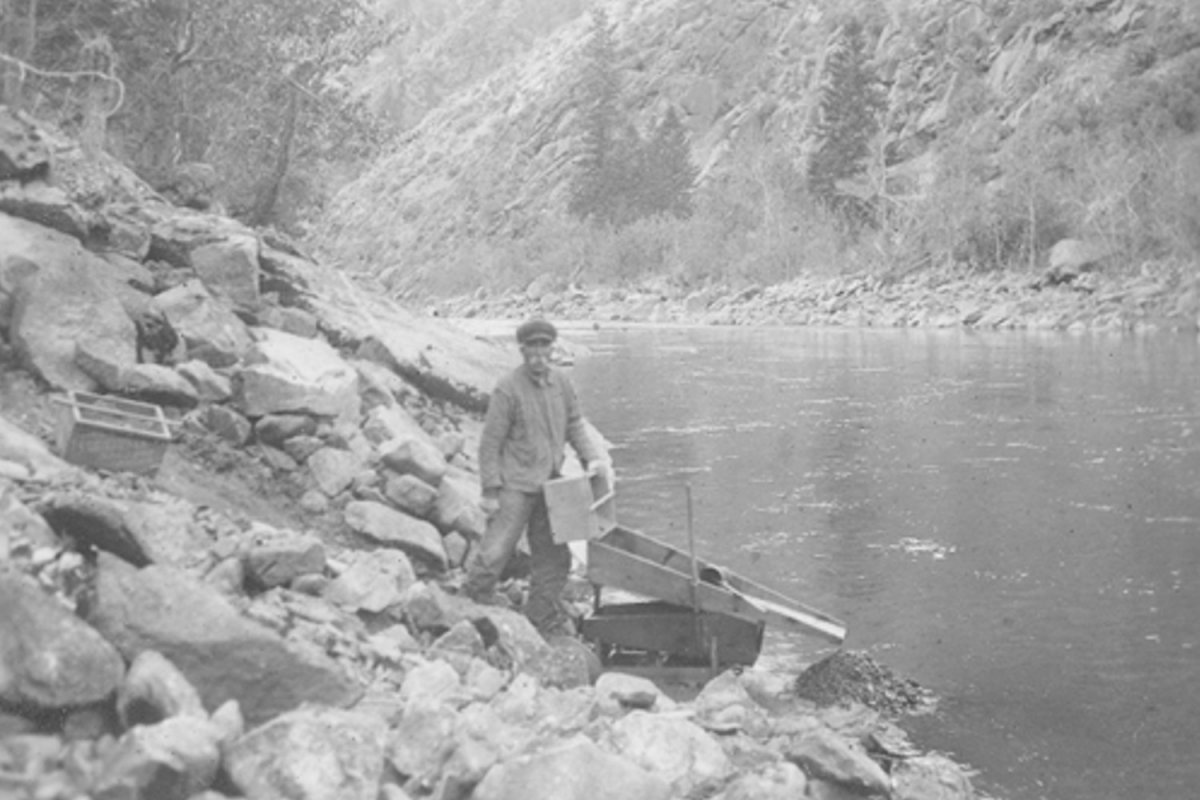 Johnny McKay mining along the Salmon River in Idaho. Photo by Herman Work, 1913