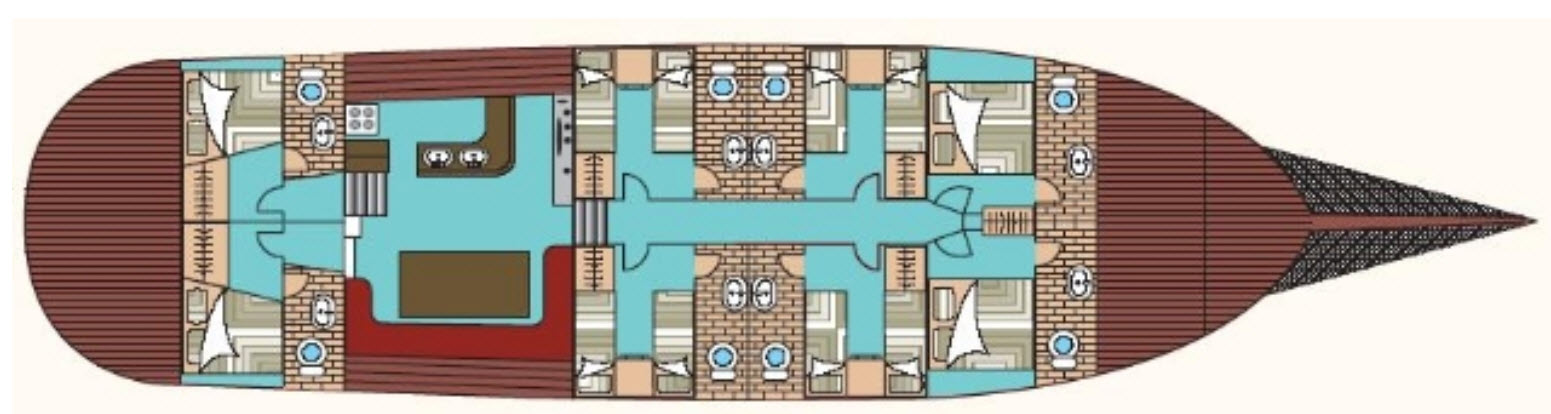 - Total Cabins: 8 Cabins in total (6 cabins with Double Beds/ Twin Beds), 2 Single cabins (one of which will be used by the guide) Max guest capacity 12.