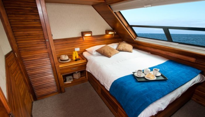 Relax in the cozy lounge area that’s complete with a flatscreen TV and library while soaking up the Galapagos views through the panoramic picture windows. The Letty also features a spacious sun deck where you can kick back in a lounger, as well as a stylish dining room and a well-stocked bar.
