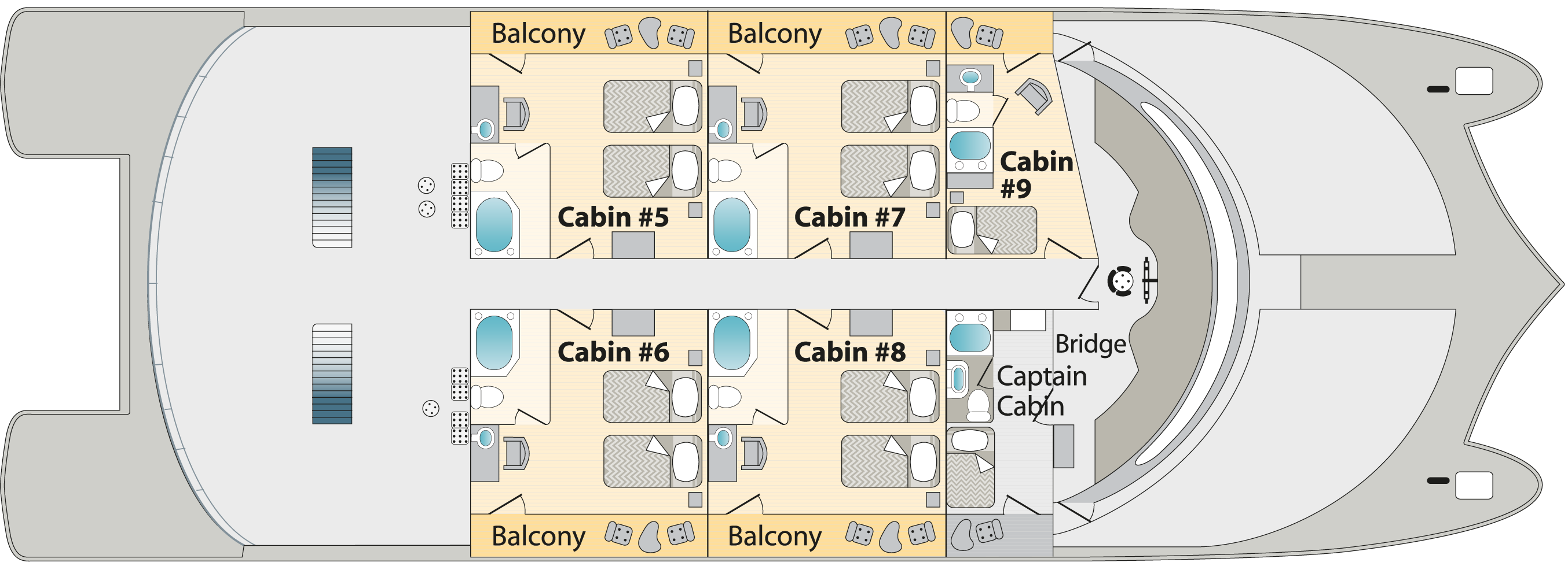 • Upper Deck: 4 Double Staterooms 323 ft² / 30 m²